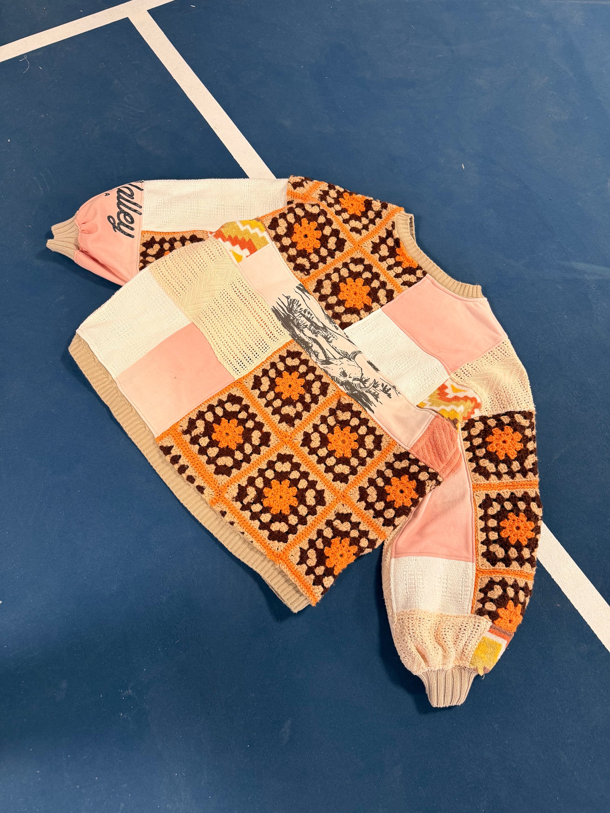 *Each piece is made from reclaimed, thrifted materials, meaning they may show subtle signs of wear from their previous life. We carefully inspect and wash all fabrics before creating, so there should be no visible stains. However, in the unlikely event that an imperfection slips through, please reach out, and we’ll repair it for free. We always ensure that nothing compromises the durability of the piece. Every garment is one of a kind, with a history woven into its fabric, making it truly unique.*