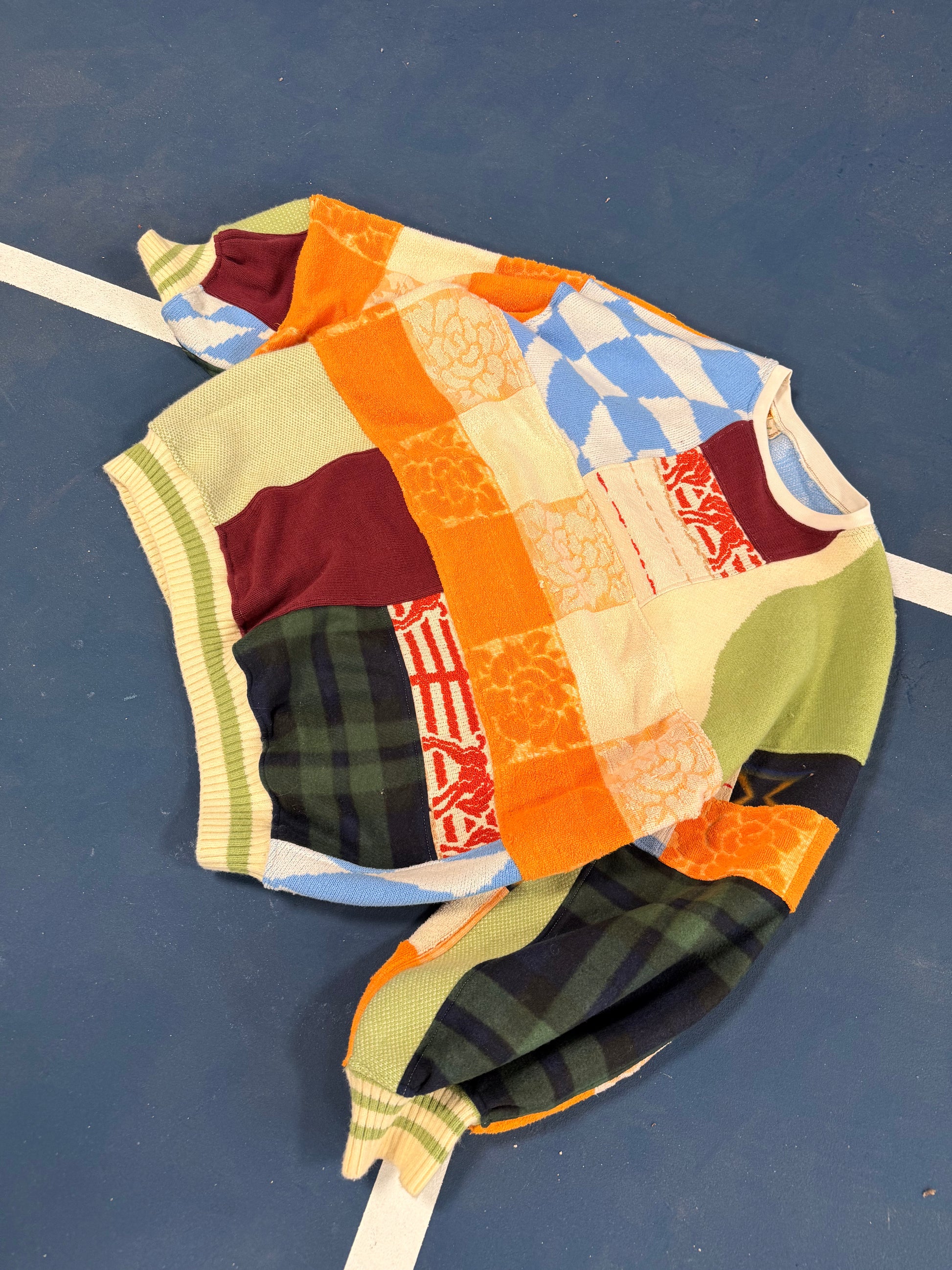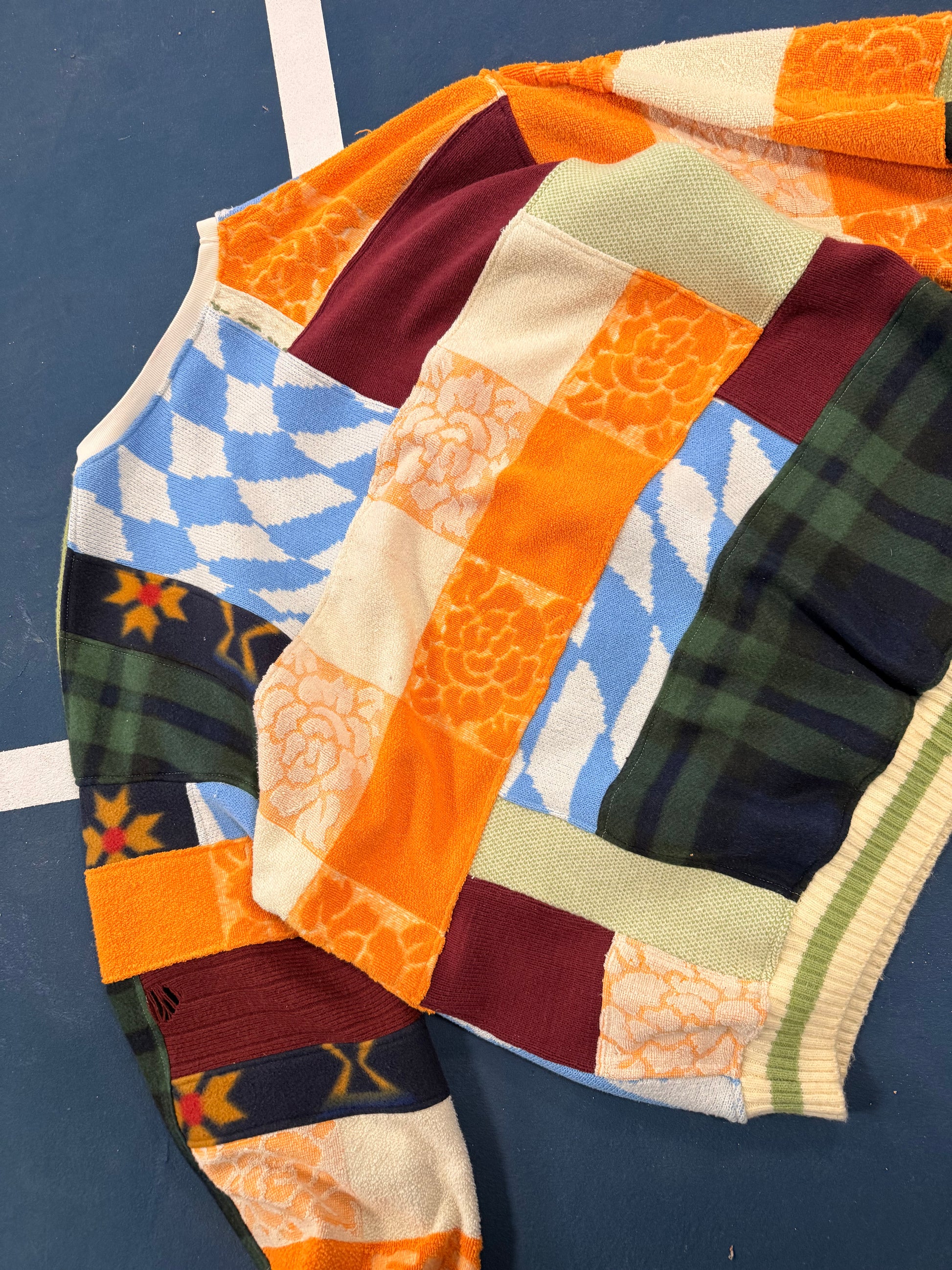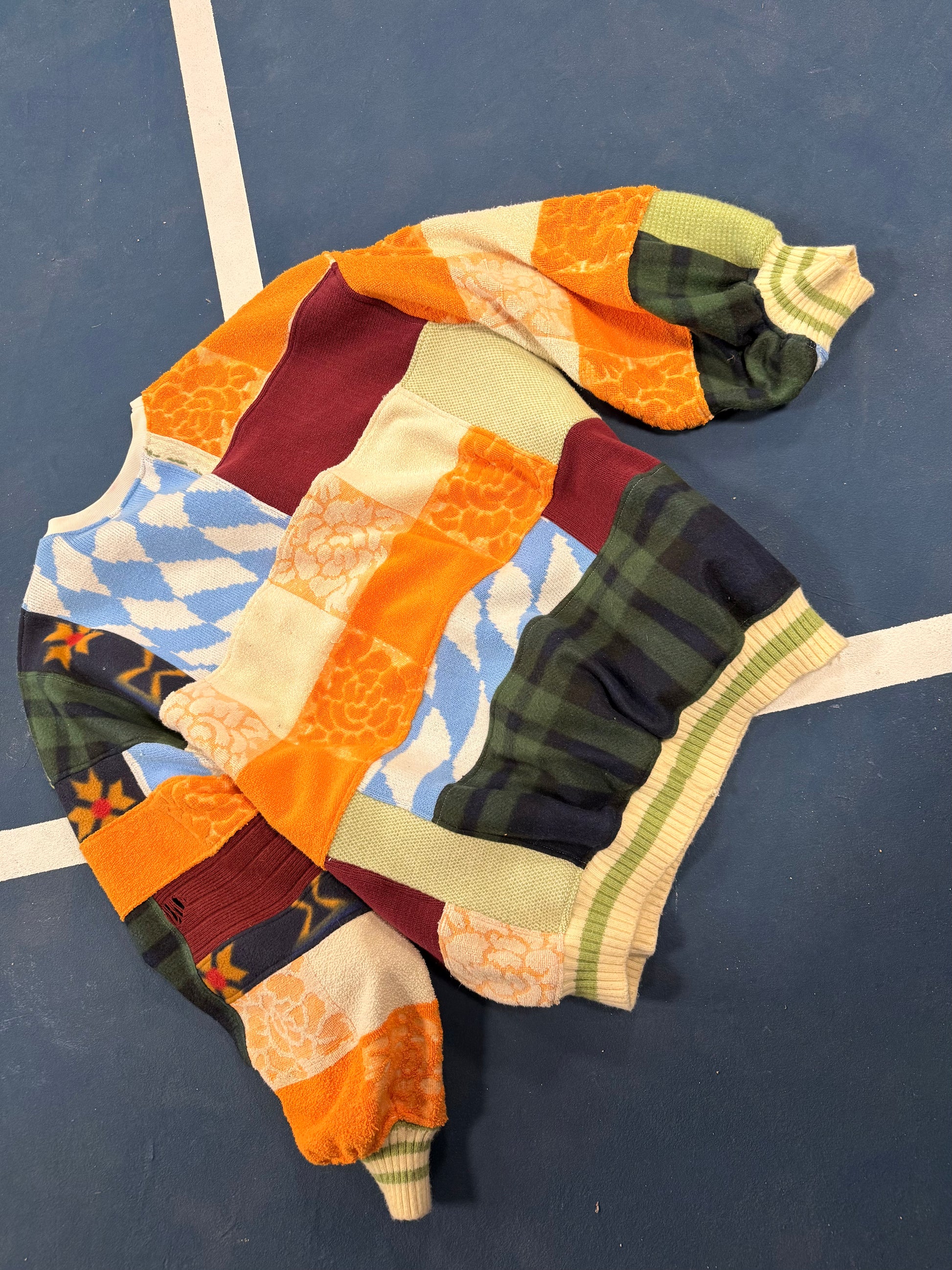 *Each piece is made from reclaimed, thrifted materials, meaning they may show subtle signs of wear from their previous life. We carefully inspect and wash all fabrics before creating, so there should be no visible stains. However, in the unlikely event that an imperfection slips through, please reach out, and we’ll repair it for free. We always ensure that nothing compromises the durability of the piece. Every garment is one of a kind, with a history woven into its fabric, making it truly unique.*